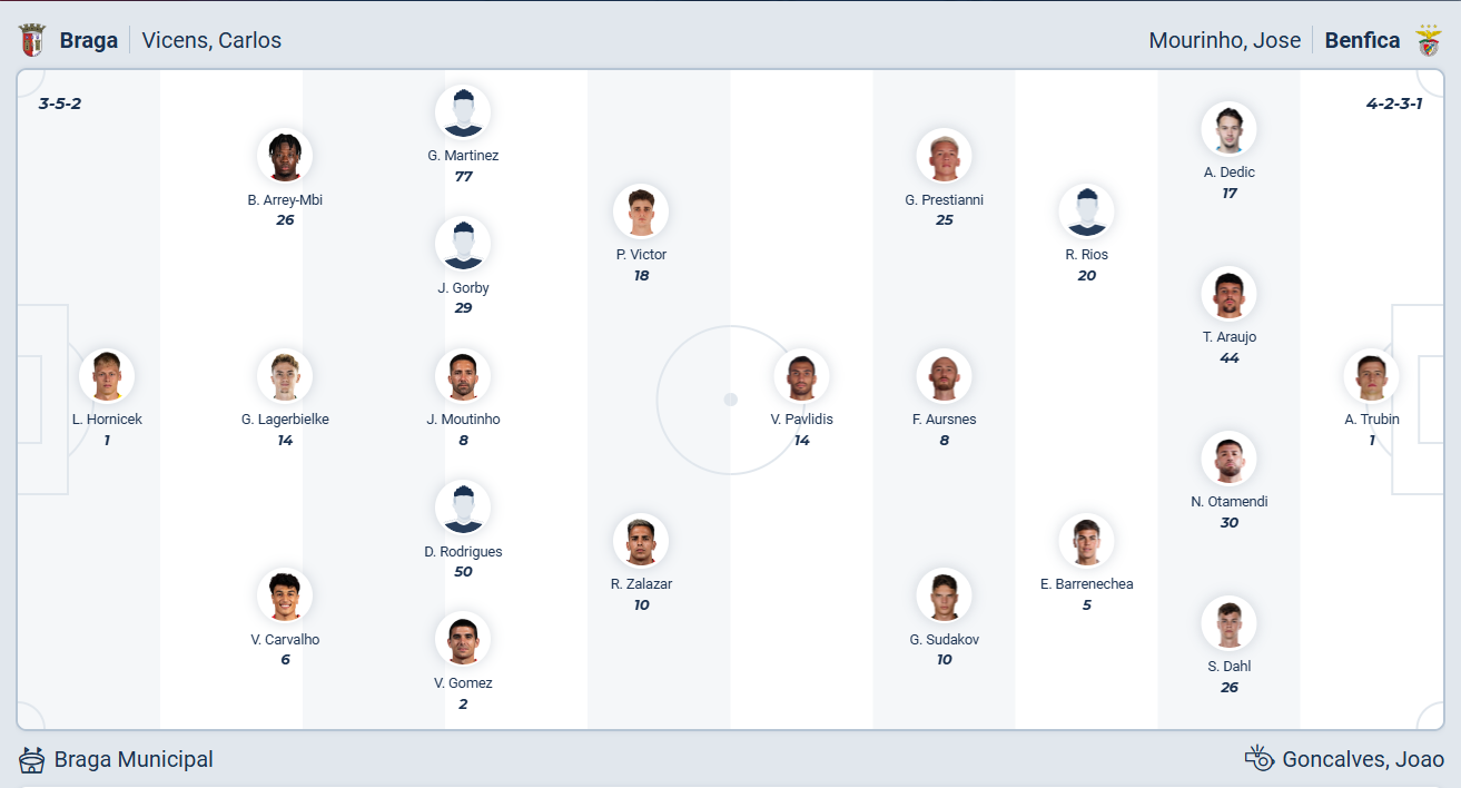 Dự đoán tỉ số trận đấu: Braga 0 – 1 Benfica (Chọn Benfica và Xỉu trận)