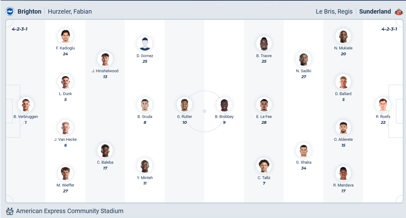 Nhận định soi kèo Brighton vs Sunderland lúc 20h00 ngày 20/12/2025