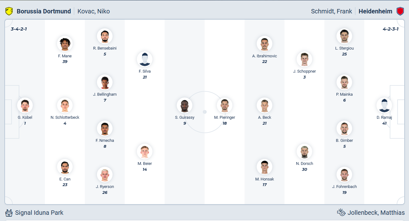 Dortmund đang có chuỗi 3 chiến thắng liên tiếp, họ đứng thứ 2 trên bảng xếp hạng, các cầu thủ của HLV Nico Kovac muốn cạnh tranh ngôi vương nhưng khoảng cách với đội đầu bảng đang là 8 điểm nên không hề dễ dàng. Trước khi nghĩ đến điều đó thì các cầu thủ Dortmund vẫn cần giành chiến thắng để ít nhất giữ được vị trí thứ 2 hiện tại của mình. Với việc ở vòng 20 này họ chỉ phải gặp đội cuối bảng Heidenheim nên cơ hội giành chiến thắng rất sáng, nhiều khả năng Dortmund sẽ không gặp nhiều khó khăn để có 3 điểm.