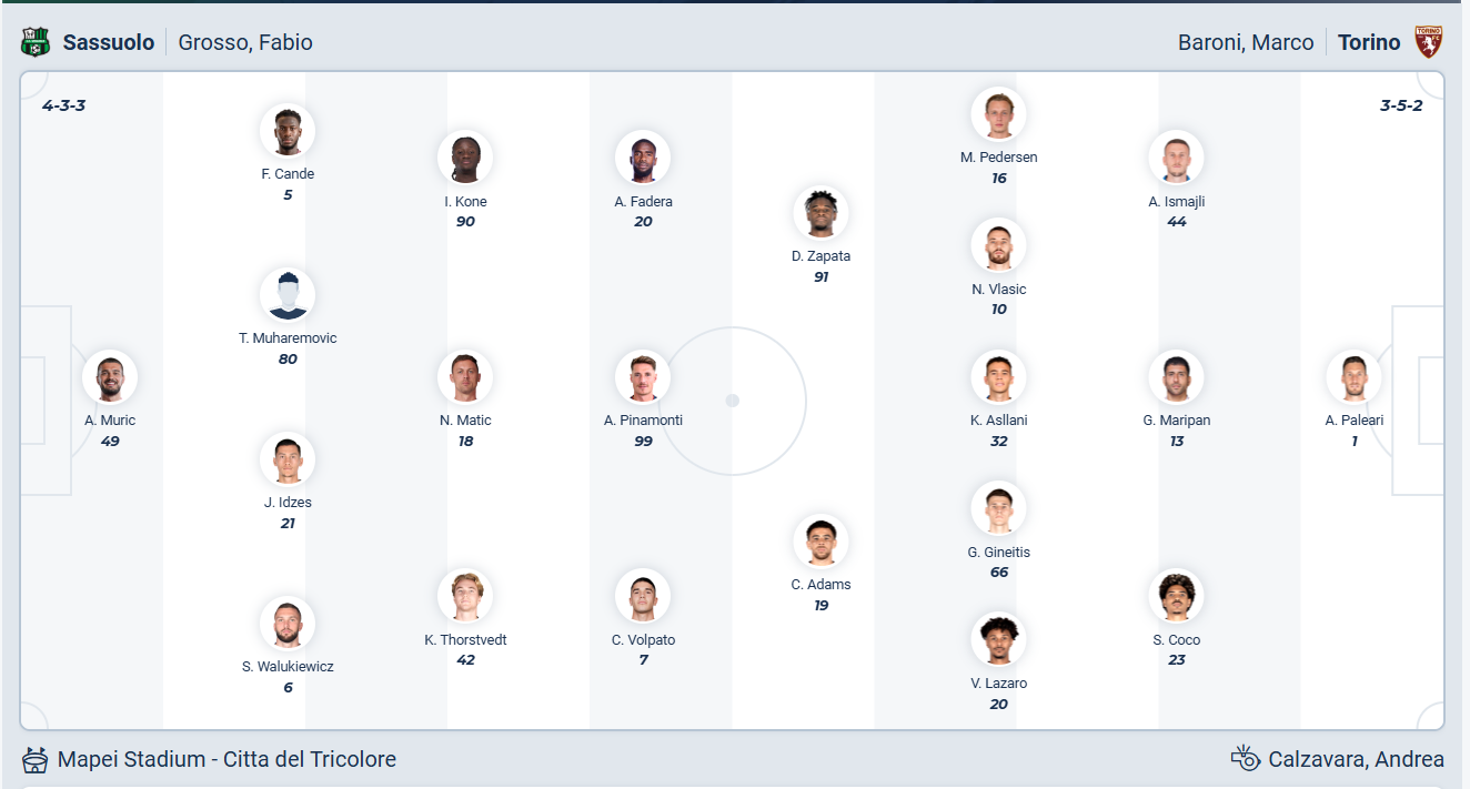 Dự đoán tỉ số trận đấu: Sassuolo 3 – 2 Torino (Chọn Sassuolo và Tài trận)